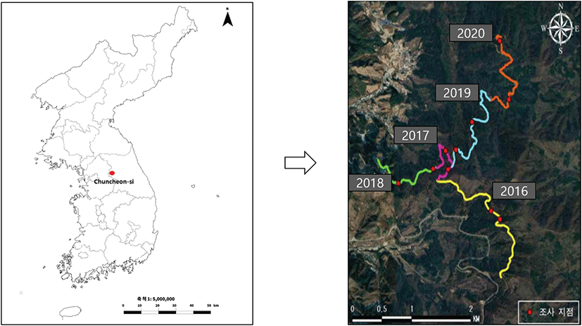 임도시공 경과년수에 따른 비탈면 식생 및 식물 분포특성: 춘천시를 중심으로